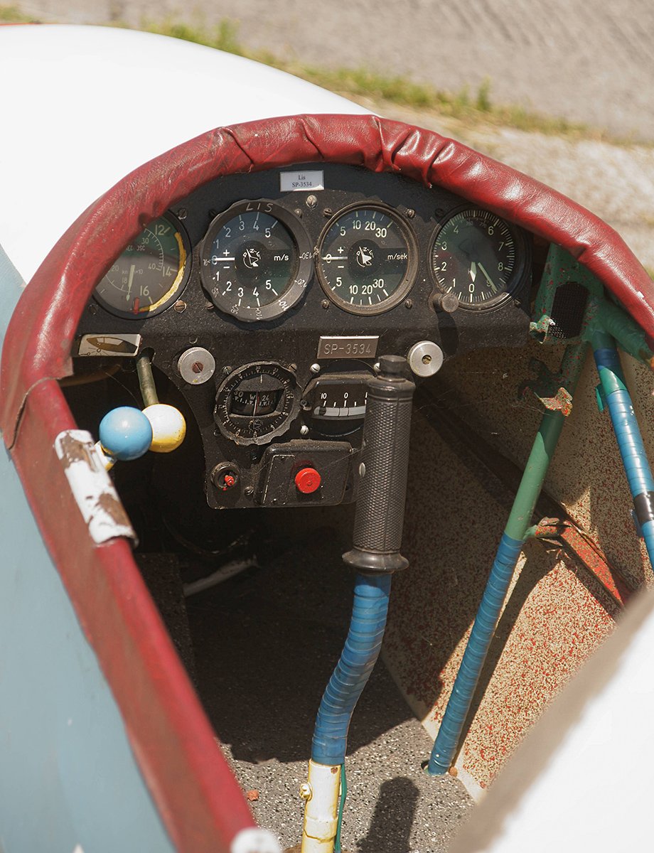 SZD-21 Kobuz 3 w stanie zdatnym do lotu Na jednym szczegóły kabiny
